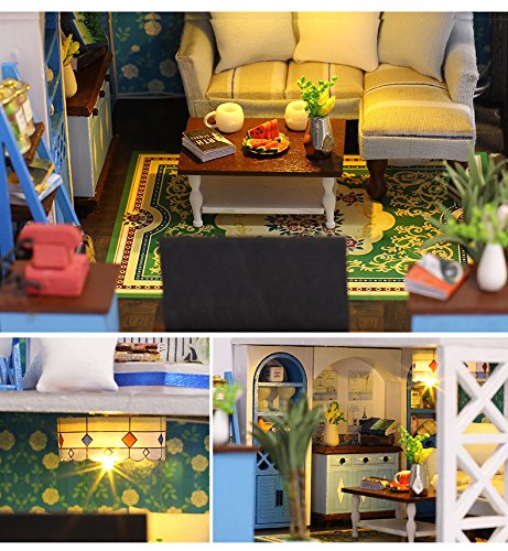 -. Feature : All furnitures,dust cover and accessories are included. (Glue and Battery are not included) / Color Instruction, each steps has pictures to show you how to DIY / The pictures shows finished project. What you will receive is package of materials you need to assemble / Finished Size: 21*17*17cm IN INCH: 8.26*6.69*6.69 / It's very romantic to send it to friends, lover, family, kids... Means more to make it by yourself!