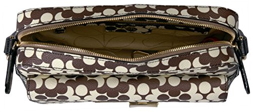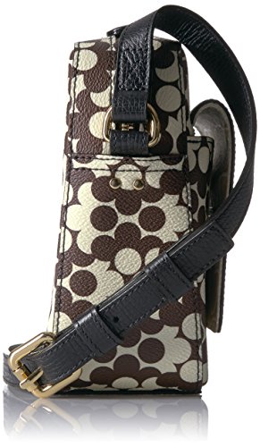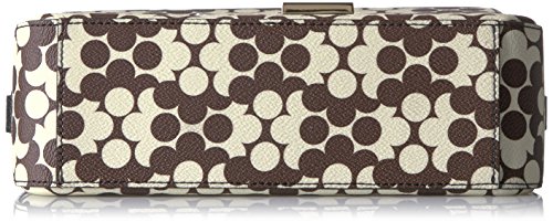 Studio : Orla Kiely Publisher : Orla Kiely Binding : Apparel Product Description Flower Wave' Robin handbag. With top zip closure. Front pocket has enamel o.k. Turnlock closure with gold trim. Textured leather adjustable shoulder strap. Inside details include sand linear stem jacquard lining, two slip pockets, one pocket with zip closure and elastic key chain.? 0