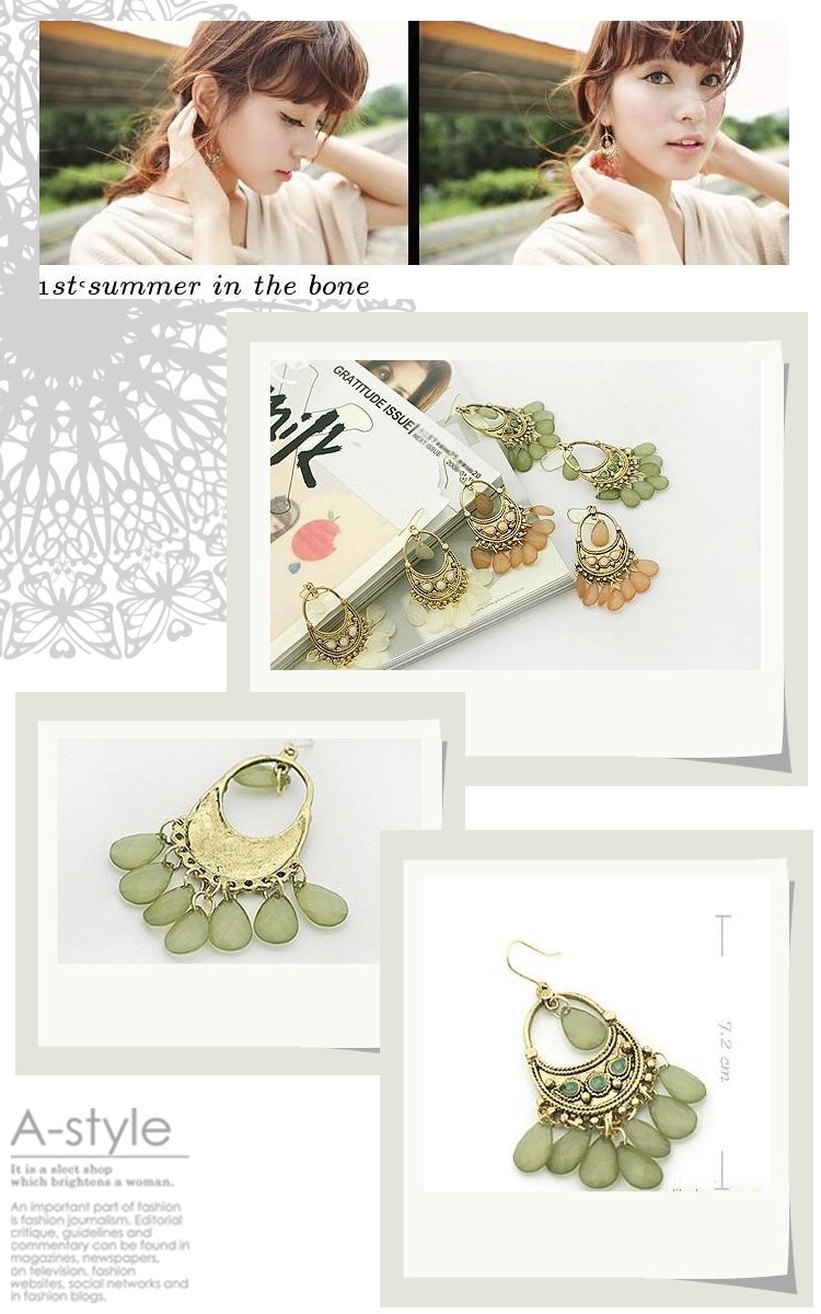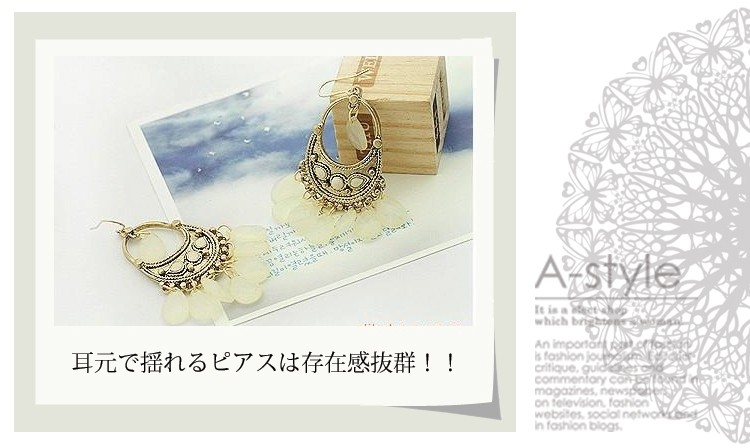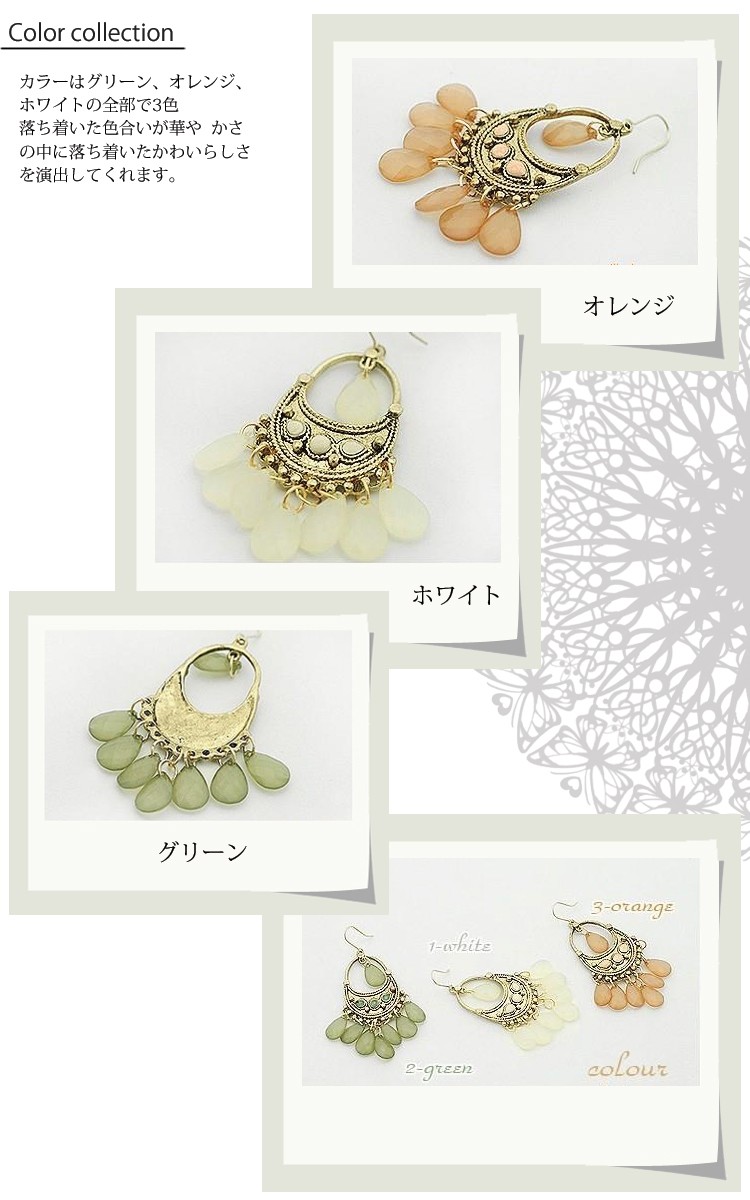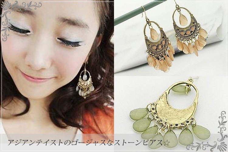 「メール便送料無料』【売り尽くしセール】アジアンテイストの ゴージャスなストーンピアス☆(グリーン・オレンジ・ホワイト)『セール品のため、返品交換不可』