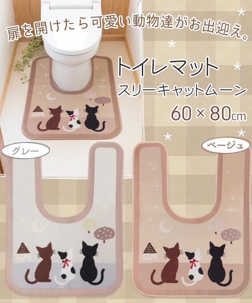 fk094igrjs落ち着いた色合いと可愛らしいデザインのトイレマット♪裏面に滑りにくい加工を施しているので、横ズレしにくいです。 製造国:中国 素材・材質:ナイロン100%(裏面滑りにくい加工) 商品サイズ:60×80cm 仕様:洗濯機・乾燥機使用不可(手洗い可)※お届け地域により、別途運賃がかかる場合やお届けできない場合がございますので、お問い合わせ下さい。