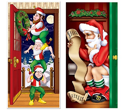 Christmas Door Cover Bundle: One Santa Bathroom Door Cover and one Christmas Elves Door Cover