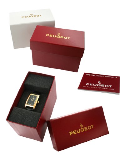 [Description] Boyfriend-style watch featuring sparkling crystals at bezel and three-hand dial movement 40 mm case with mineral dial window Quartz movement with analog display Triple-tow link bracelet with deployment clasp Water resistant to 99 feet (30 M): withstands rain and splashes of water_ but not showering or submersion Backed by Peugeot``s industry leading Limited Lifetime Warranty and FREE lifetime battery replacement (details found on warranty)