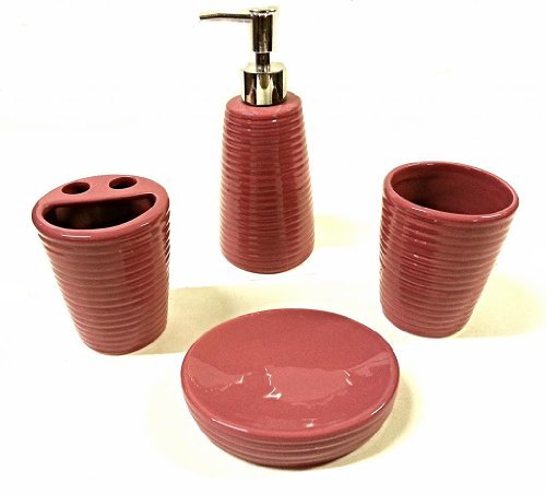 -. Feature : 4 Piece Ceramic Bathroom Accessory Set / Available in many solid colors / 1 Ceramic Soap Dish, 1 Ceramic Tumbler / 1 Ceramic Toothbrush Holder, 1 Ceramic Lotion Dispenser