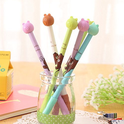 -. Title : Katoot@ 12 pcs/lot Cute Brown Bear Gel pen Cartoon candy colored 0.38mm black pen stationery kids gift office school supplies zakka