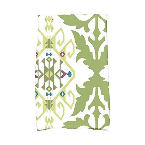 E by design KTGN539GR17GR21 Bombay Medallion Geometric Print Kitchen Towel, 16" x 25", Green