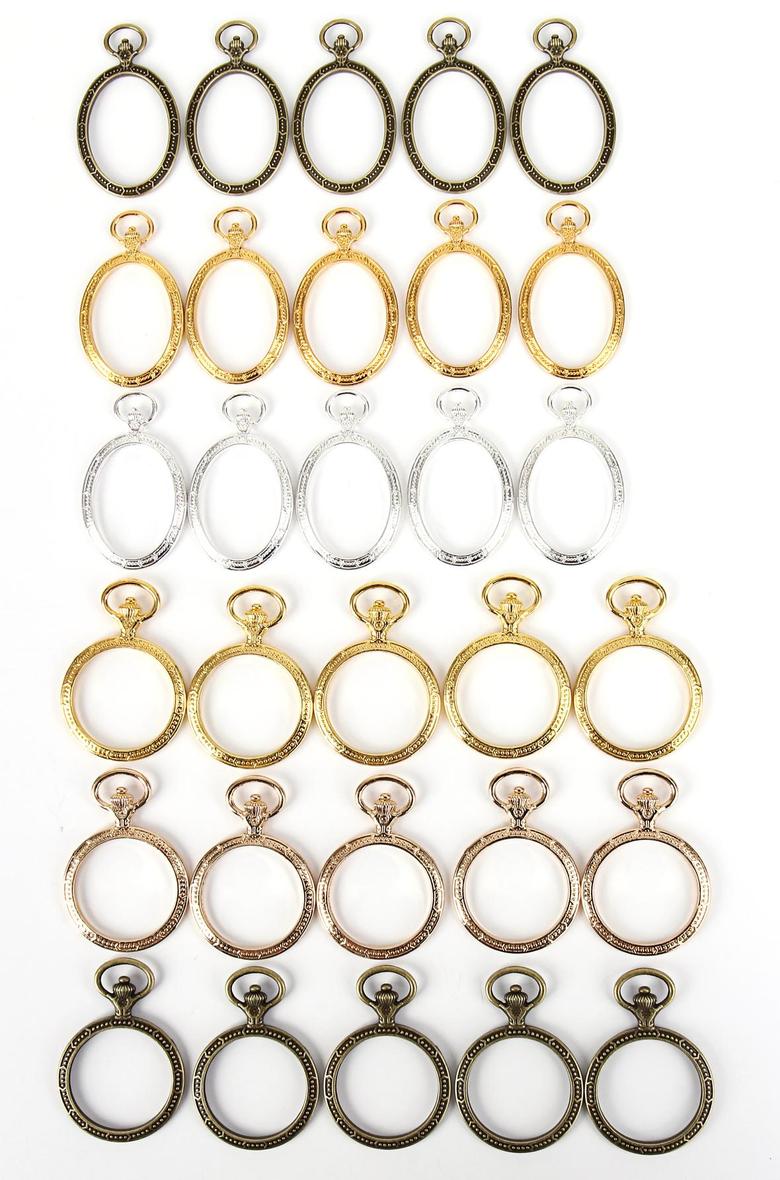 【30個セット】 懐中時計 レジン 枠 空枠 アクセサリー パーツ 円形 3色各5個 & 楕円形 3色各5個
