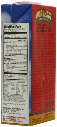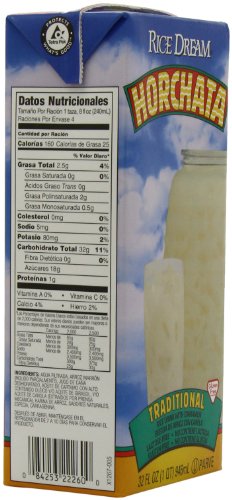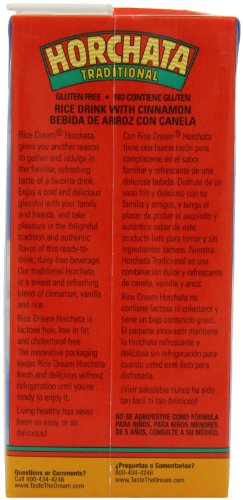 RICE DREAM Horchata Non-Dairy Beverage, 32 Fluid Ounce. Rice Dream Horchata is a traditional and authentic non-dairy beverage, a sweet and refreshing blend of cinnamon, vanilla and rice. Enjoy a cold glassful and take pleasure in knowing that Rice Dream Horchata is a low fat, lactose free and cholesterol free food, which means you'll be worry free as you delight in this delicious favorite beverage.