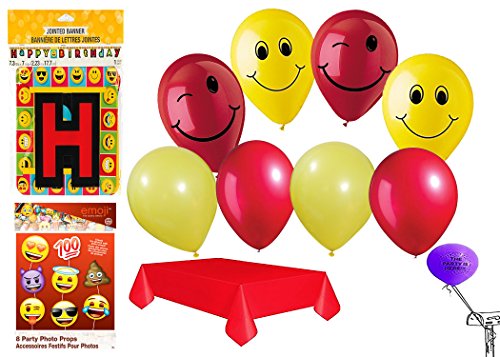 Emoji Party 16 Ct Photo Props With 2 Happy Birthday Jointed Banners And 9 Balloons 1 Red Table Cover