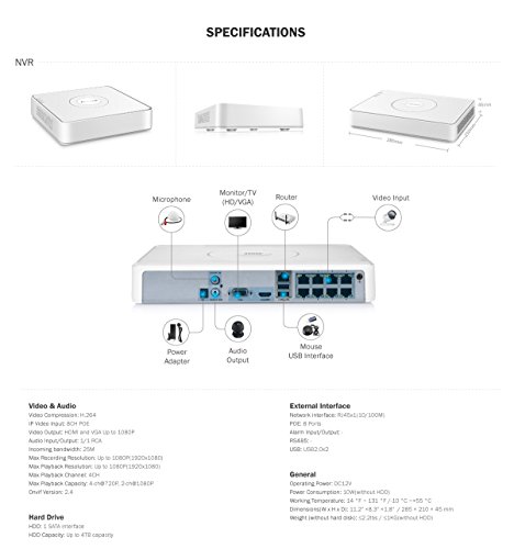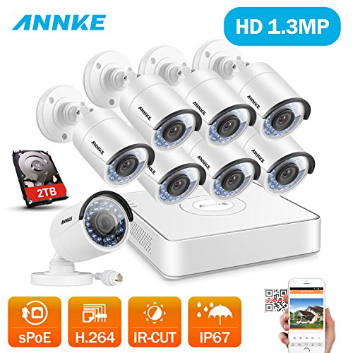-. Title : ANNKE Outdoor 1.3-Megapixel (1280 x 960P) IP PoE Video Security Surveillance System and (8) Weatherproof HD Cameras, 8 Channel 2TB NVR Storage, 100ft Night Vision, Power over Ethernet (White)