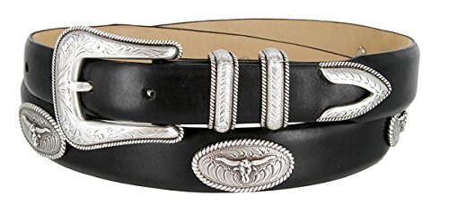 (Hagora)/Accessories/Belts Buckles/DIRECT FROM USA/Hagora Men 30 mm Wide Genuine Leather Silver Longhorn Concho Floral Buckle Belt
