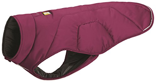 -. Binding : Misc. -. Brand : Ruffwear -. Feature : SEE IMAGES FOR SIZING CHART / Recycled polyester shell and synthetic insulation offer warmth in the coldest conditions / Jacket packs into an integrated stuff sack / Side release buckles for easy on and off / Low-light visibility with reflective trim and light loop for attaching The Beacon safety light -. Label : RUFFWEAR -. Manufacturer : RUFFWEAR -. PackageQuantity : 1 -. ProductGroup : Pet Products -. ProductTypeName : PET_SUPPLIES -. Publisher : RUFFWEAR -. Studio : RUFFWEAR -. Title : RUFFWEAR QUINZEE PURPLE INSULATED DOG JACKET EASY ON / OFF ALL SIZES