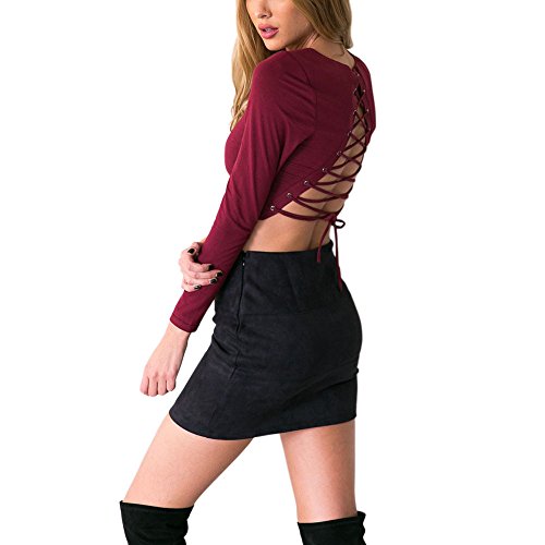 -. Feature : S=US 2 , M=US 4-6, L=US 8-10 , XL=US 12 / Feature lace up detail at the back with open back design. Sexy cropped sweatshirt for this autumn ahead to show a little bit of skin / Classic style with exquisite design details / Package include:1x Crop top / Note:Amazon size chart is not our True size chart,please refer to our Last Picture or the Below Description,thanks!