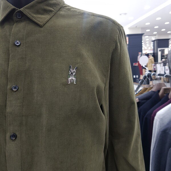따뜻하고 포근한 카키 색상에 코듀로이 캐주얼 셔츠입니다.가을부터 추운 겨울까지 따뜻하게 착용 가능하며 왼쪽 가슴에 귀여운 불독 자수로 포인트를 주어 캐주얼한 느낌을 연출하기 좋습니다.니트나 터틀넥과 함께 매치하면 깔끔한 느낌을 주며 정장이나 슬랙스에 타이를 매지 않아도 포인트로 단정하게 연출 할 수 있습니다. 슬림핏 라인으로 봄, 가을, 겨울까지 착용 가능합니다.