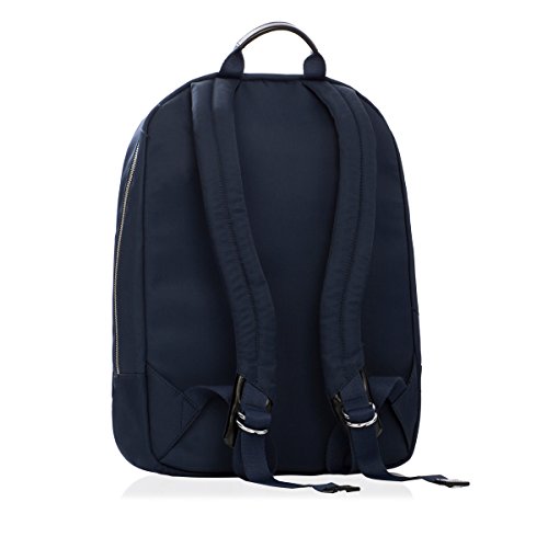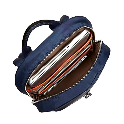 -. Feature : Sleek nylon exterior with saffiano leather trim / Colorful soft lining / Fastens securely with a nylon top zipper / Holds up to a 14-inch laptop within its quilted laptop pouch with shockproof protection / 3.90x11.60x16.54 / Pockets: 2 interior slip, 2 interior zip, 2 exterior