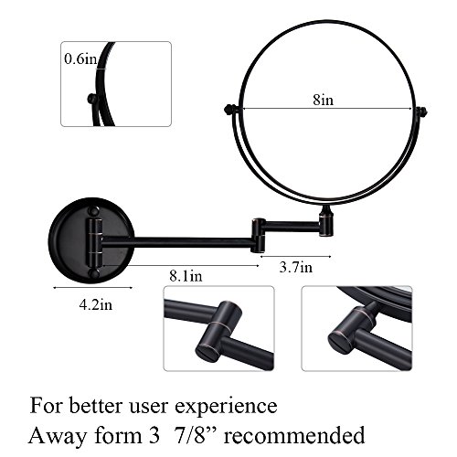 - Double-sided mirror with normal and 7 x magnifying,sufficien magnification for applying make-up,wearing contacts and shaving,etc.