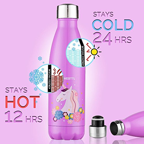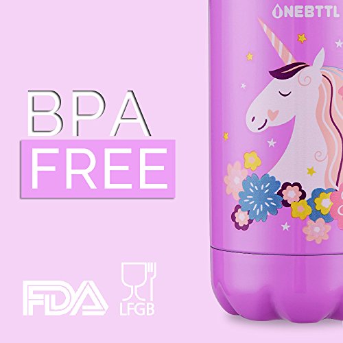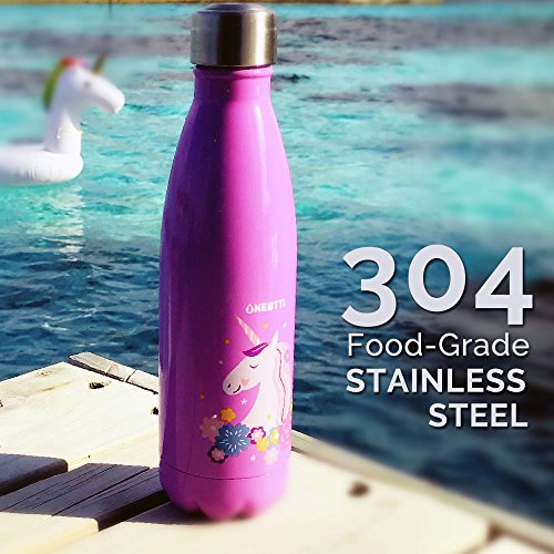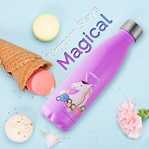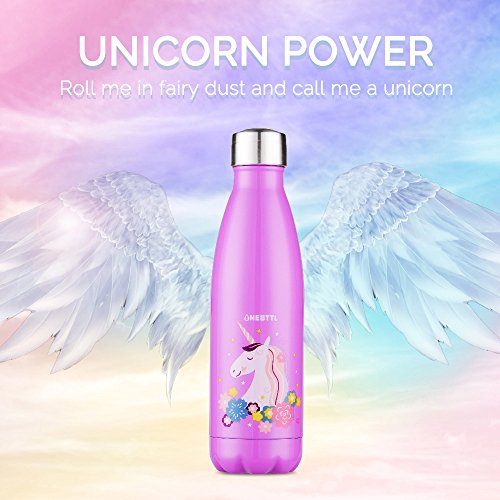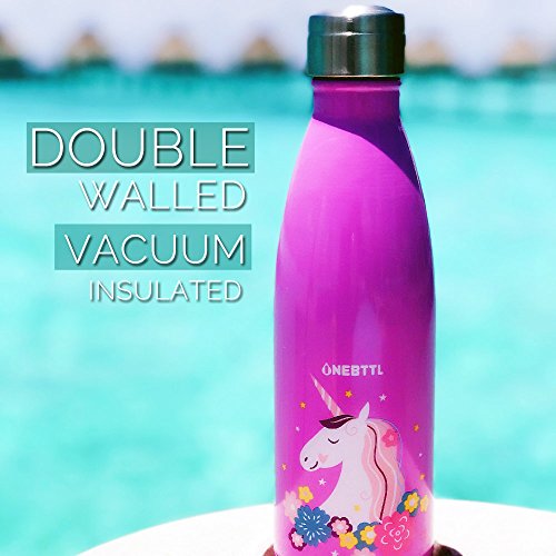 Unicorn Gifts for Chirstmas, Stainless Steel Water Bottle (17oz/500ml), Double Wall Vacuum Insulated Thermo Bottle for Unicorn Party and Birthdays - Onebttl Aqua UnicornPower