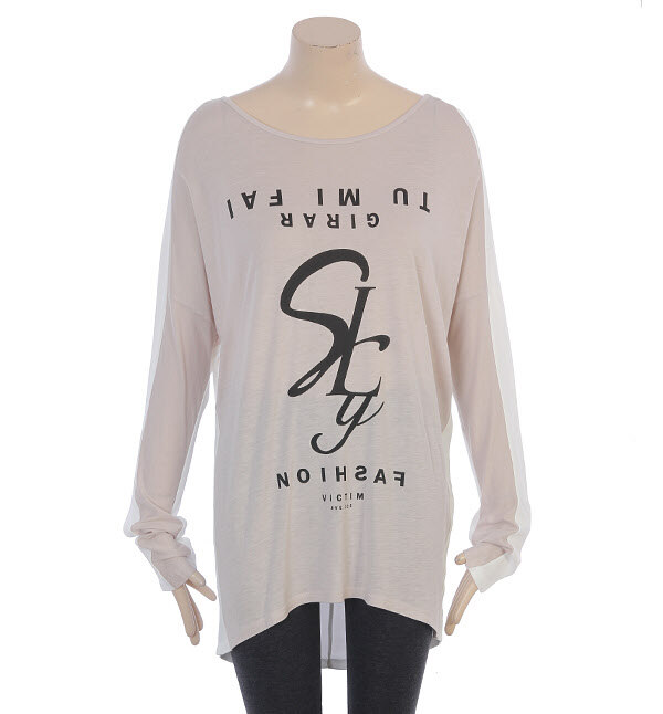 SISLEY, 위트있는 영문레터링으로 포인트를 주고 앞 뒤 배색으로 멋을 낸 캐쥬얼한 무드의 와이드 라운드넥 티셔츠입니다
