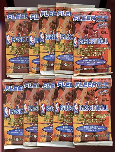 1997-98 Fleer NBA Basketball Factory Sealed Packs (10) Factory Sealed Packs - 110 Cards! Loaded with ROOKIES & Inserts! Look for Rookies of Tim Duncan & RARE Insert Cards including all the Top NBA Picks from 1997-98 !