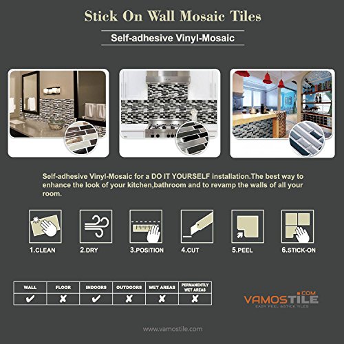 Vamos Tile Premium Anti Mold Peel and Stick Tile Backsplash,Self Adhesive Wall Tiles for Kitchen & Bathroom-11.2" x 10" (6 Sheets)