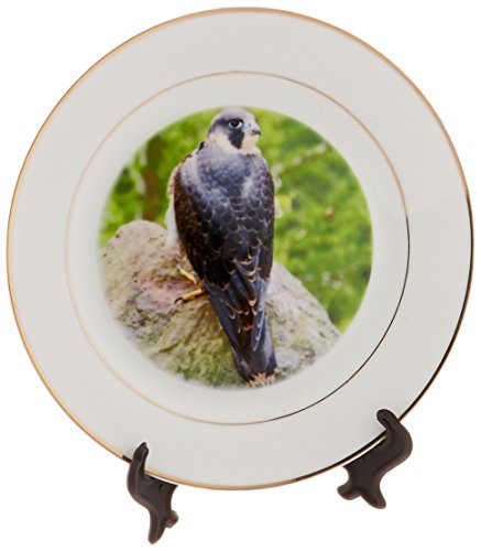 3dRose cp_82756_1 WildLIfe, Peregrine Falcon Bird on Rock EU33 DSI0041 David Slater Porcelain Plate, 8-Inch