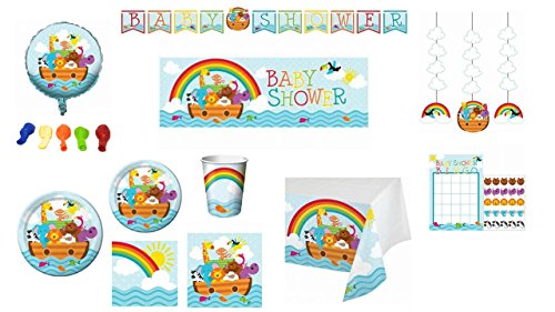- Save with our Combo Pack! Everything you need to create a perfectly coordinated party with supplies for 8. The design is fun and adorable featuring animals in the ark and rainbows against the backdrop of blue water and sky.