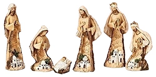 - includes the Holy Family and 3 Wisemen with carved scenes in each of the figures other than baby Jesus