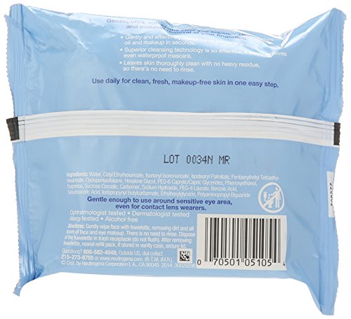 -. Feature : Neutrogena Makeup Remover Cleansing Towelettes offer you superior cleansing and makeup removal at your fingertips / These gentle, ultra soft cloths contain superior cleansing technology so effective it removes even waterproof mascara / Gentle enough to use around the sensitive eye area, even for contact lens wearers / 25 pre-moistened towelettes