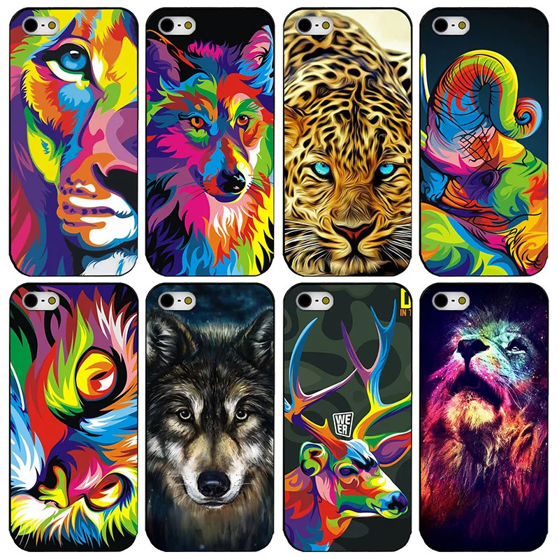 ベストセラー印刷ライオン虎ヒョウオオカミエルク塗装プラスチックハードプロテクターケース用iphone 4 4 s 5 5 s 5c se 6 6 s 6プラス6 s-plus 7 7プラス