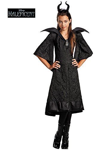 -. Feature : Size Medium (fits 7-8), Large (fits 10-12) / Includes dress with detachable brooch and headband with horns / Dress 100% Nylon. Shoulder collar, Back bodice and