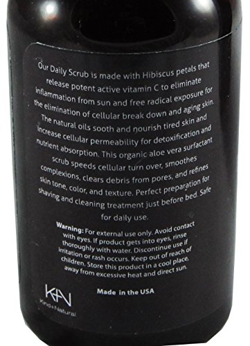 -. Feature : Our Daily Scrub is made with Hibiscus petals that release potent active vitamin C to eliminate inflammation from sun and free radical exposure for the elimination of cellular break down and aging skin / The natural oils sooth and nourish tired skin and increase cellular permeability for detoxification and nutrient absorption / This organic aloe vera surfactant scrub speeds cellular turn over, smoothes complexions, clears debris from pores, and refines skin tone, color, and texture. / Perfect preparation for shaving and cleaning treatment just before bed. Safe for daily use. / Risk Free - 100% Satisfaction Guaranteed with a 60 day return hassle free return policy.