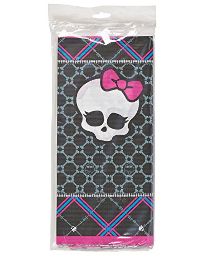 - Feature : 1 plastic table cover / Measures 54 in. x 96 in., 36 sq. ft. / Suitable for indoor and outdoor use / The ghoulishly fun design features a pink, blue and black border with the Monster High logo and Skullette! / Perfect American Greetings party supplies for a kid's birthday party or Monster High themed party