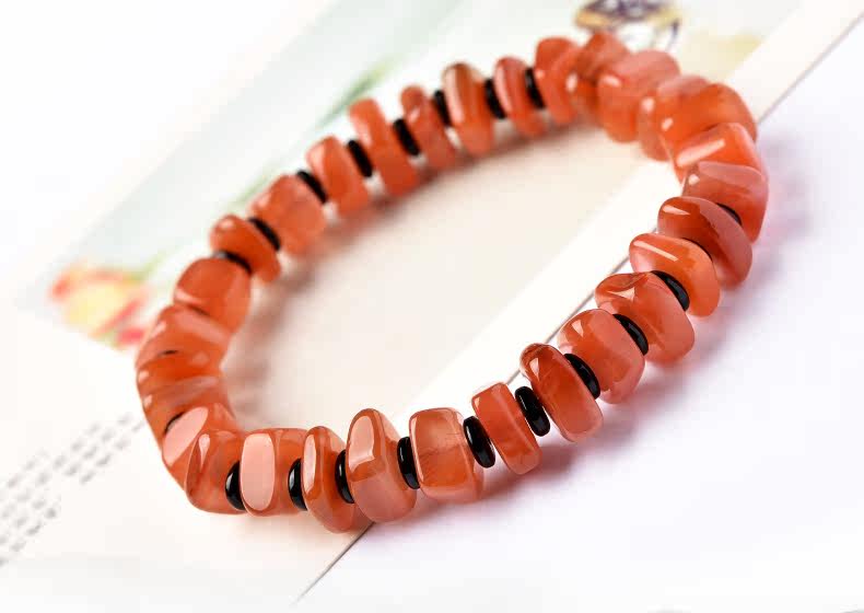 南红玛瑙随形手链 冰种柿子红玛瑙手串水晶饰品男女 红润细腻