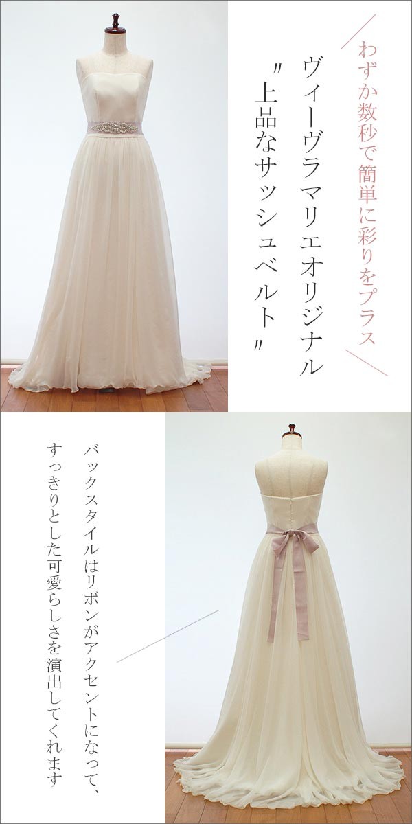 結ぶタイプになりますので、ドレスを傷つけることなく、簡単にイメージチェンジ可能です。
