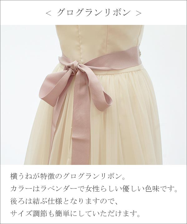【グログランリボンのビジューベルトカラーは 「ラベンダー」 になります。】シンプルなドレスのウエストに華やかな彩りを添えてくれるサッシュベルトです。横うねのある平織りが特徴のグログランリボンにビーズやパールの加工が施されたモチーフがポイント。後ろは、結ぶ仕様となりますので、サイズ調節も簡単です!バックスタイルもリボンがアクセントになり、上品な可愛らしさをプラスしてくれます。【*こちらはリボンベルトのみの商品となり、ドレスは付属いたしません。 ご注意ください。】【検索キーワード】ウェディングドレス/ウエディングドレス/白ドレス/マリッジ/ブライダル/ガーデンウェディング/フォトウエディング/花嫁/新婦/ブライズ/挙式/結婚式/披露宴/パーティ/パーティー/チャペル/教会/人前式/セレモニー/海外/リゾート/ホテル/式場/2次会/1.5次会/前撮り/アクセサリー/ヘアアクセ/ウエディング小物/ウェディング小物/Wedding/Bridal/ギフト/プレゼント/贈り物/花/フラワー