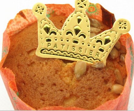 PETMALL Gold Crown Cake Toppers Cupcake Wrappers picks cases for kids birthday favors party decorations supplies festa 100pcs CF-149