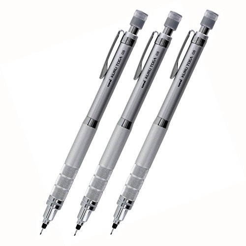 Uni Kuru Toga Roulette Auto Mechanical Pencil, 0.5mm, Gun Metallic Silver, Pack of 3