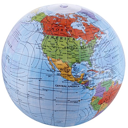TCP Global 12" Inflatable World Globes (Set of 3 Designs) - Political, Topographical - Fun Educational, Learn Earth's Geography 3 Different designs of political and topographical 12" inflatable world globes. Inflatable world globes are a fun and affordable way to provide geography education at home, in the classroom or while they're being used for fun at the beach or in a pool. World globes provide a fun way to introduce kids to geography without intimidating them from learning. Includes learning activity guide. Learning Activity Guide World globes provide a fun way to introduce kids and students to geography without intimidating them from learning. The following activities will help make the learning process easier. Tossing or spinning the globe: Have students identify the areas where their hands or finger are touching the globe after catching or spinning it. - Ask, are they touching land or water?