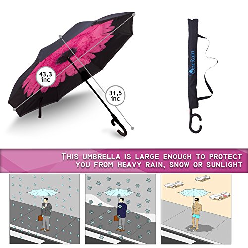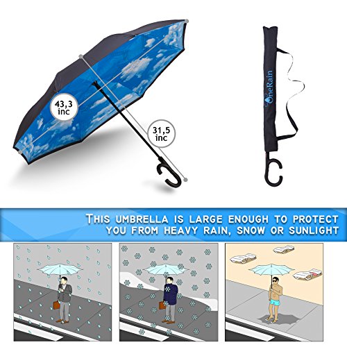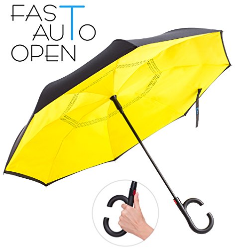 -. Title : Inverted Umbrella Premium - Auto Open Reverse Double Layer Umbrella – Anti-UV Windproof and Waterproof With C-Shaped Handle For Women and Men