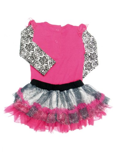 - Title : Baby Girl Black White and Pink Long Sleeve Bodysuit and Tutu Outfit by Baby Starters - Hot Pink - 6 Mths / 12-16 Lbs