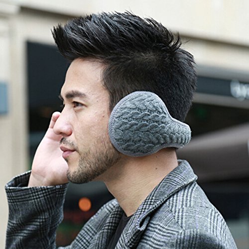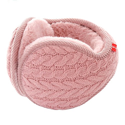 Surblue Unisex Warm Knit Cashmere Winter Pure Color Earmuffs with Fur Earwarmer, Adjustable Wrap