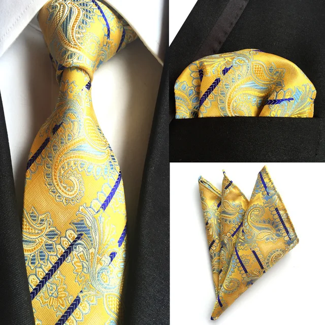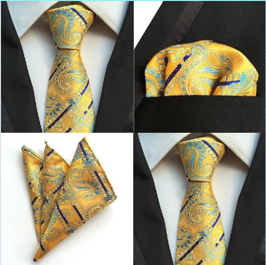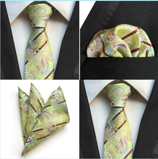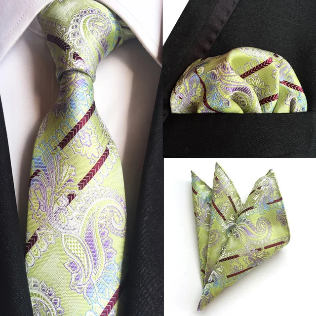 | [해외]공장 2 색 페이즐리 스트라이프 넥타이 세트 남성 100% 실크 고급 넥타이 손수건 세트 웨딩 비즈니스 파티 넥타이 손수건 정장 |