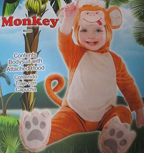 -. Binding : Toy -. Brand : Goodmark -. Color : Brown, Cream -. Department : unisex-baby -. EAN : 6490008181629 -. Feature : Baby Monkey Bodysuit with Attached Hood / Perfect for Halloween or Dress Up and Parties / Size is for up to 22 pounds / Great for girls or boys -. IsAdultProduct : 0 -. PackageQuantity : 1 -. ProductGroup : Toy -. ProductTypeName : TOYS_AND_GAMES -. Size : 6 months -. Title : Goodmark Infant Unisex Baby Monkey Costume 6-12 Months