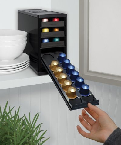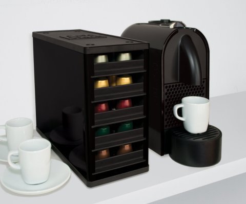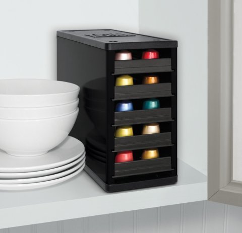 最大60個のネスプレッソを収納、 各段に12個づつ収納できます。