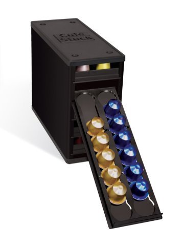 手軽に本格的なエスプレッソコーヒーが楽しめるネスプレッソマシン。その日の気分に合わせて味を楽しめるから、毎日の生活に彩りがでますよね。でも、そのカプセルの置き場に少し困っていませんか?ビニール袋の中にまとめてしまっておくのもいいけれど、せっかくおしゃれなネスプレッソマシンだから、専用カプセルもスタイリッシュに収納しませんか?CafeStackはネスプレッソカプセル専用にデザインされた収納ケース。手狭になりがちな日本のキッチンでも、最大60個のネスプレッソカプセルをコンパクトに収納できます。コンパクトさだけがCafeStackの魅力ではありません。キッチンの配置ではどうしても高い場所にしか置く場所がないこともありますよね。このCafeStackは各段の収納部分を引き出すと斜めに下がる設計になっているので、高い位置に収納しても取り出し、収納に困りません。アメリカで30年以上デザイナーとして活躍してきたYOUCOPIAのデザイナーが満を持して送り出したこの商品はアメリカで大ヒット商品となっています。気になるカラーバリエーションは全部で7種類。お手元のネスプレッソマシンに合わせて選ぶもよし、キッチンやオフィス全体のイメージに合わせて選ぶもよし。テーマに合わせてお好きな色をお選びください。身近に使ってほしいからお値段も手ごろな価格でご提供します。ネスプレッソライフをYOUCOPIAのカフェストックが応援します。Feature