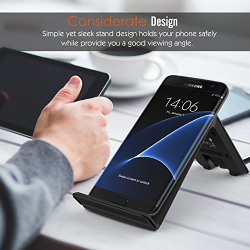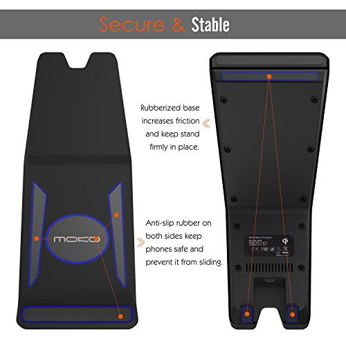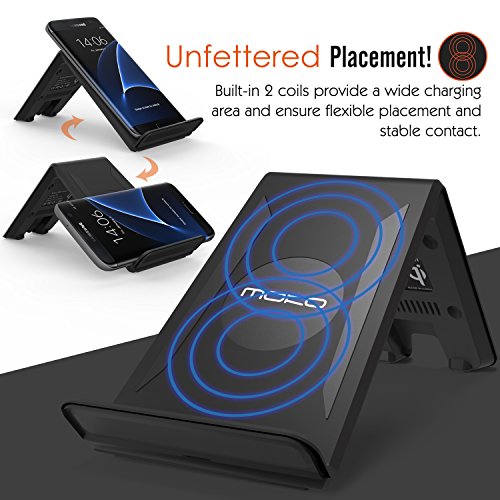 MoKo Fast Wireless Charger, 2-Coil Charging Pad Stand for Samsung Galaxy S7 / S7 Edge / S6 / S6 Edge / S6 Edge Plus / LG G3, Google Nexus 7, All Qi-Enabled Devices, Black