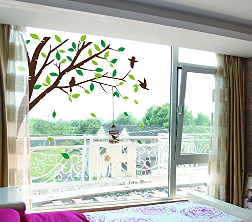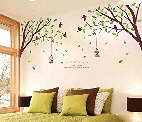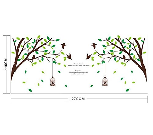 ufengke XLarge Green Garden Series Green Trees Branches Birdcage Birds Wall Decals, Living Room Bedroom Removable Wall Stickers Murals, Set of 2 Sheets