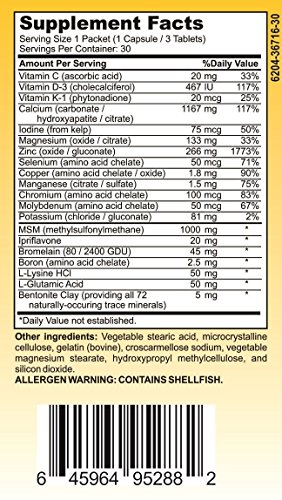 -. Feature : All-In-1 Formula - Strong and Healthy Bone Support Supplement / Supports Bone Health and Bone Density with 20 Ingredients / Provides Trace Minerals to Help Fortify Your Bones - Satisfaction Guaranteed or 100% Money Back! / Professionally Formulated with: Vitamin C, Vitamin D-3, Vitamin K-1, Calcium, Magnesium, Zinc, Manganese, Copper, Potassium, IP.R.Iflavone, Bromelain, Boron, L-Lysine, Vitamin D-3, Calcium, Iodine, Magnesium, Zinc, Selenium, Copper, Manganese, Chromium, Molybdenum, Potassium, Boron, Bromelain, L-Glutamic Acid, and Bentonite Clay (providing all 72 Naturally-occurring trace minerals) - Bone Health Supplements - Bone Density Supplements / Bone Supplement / Bone Vitamins