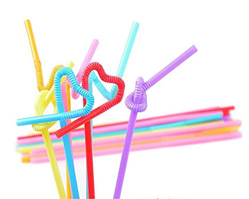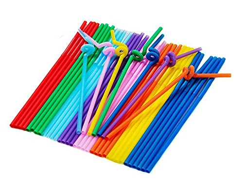 -. Title : Colorful Disposable Plastic Long Flexible Drinking Straws (100)