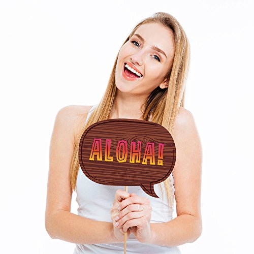 HIGH-QUALITY PARTY SUPPLIES: Tiki Luau photo booth props are professionally printed on thick cardstock paper. They will arrive cut out and ready to assemble with the included wooden dowel sticks and adhesives.
