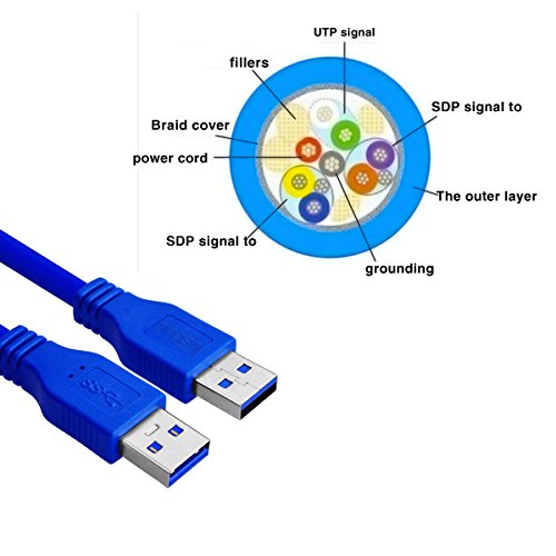 Energup Superspeed USB 3.0 Type A Male to Type A Male 24/28AWG Cable 6 Feet, Blue